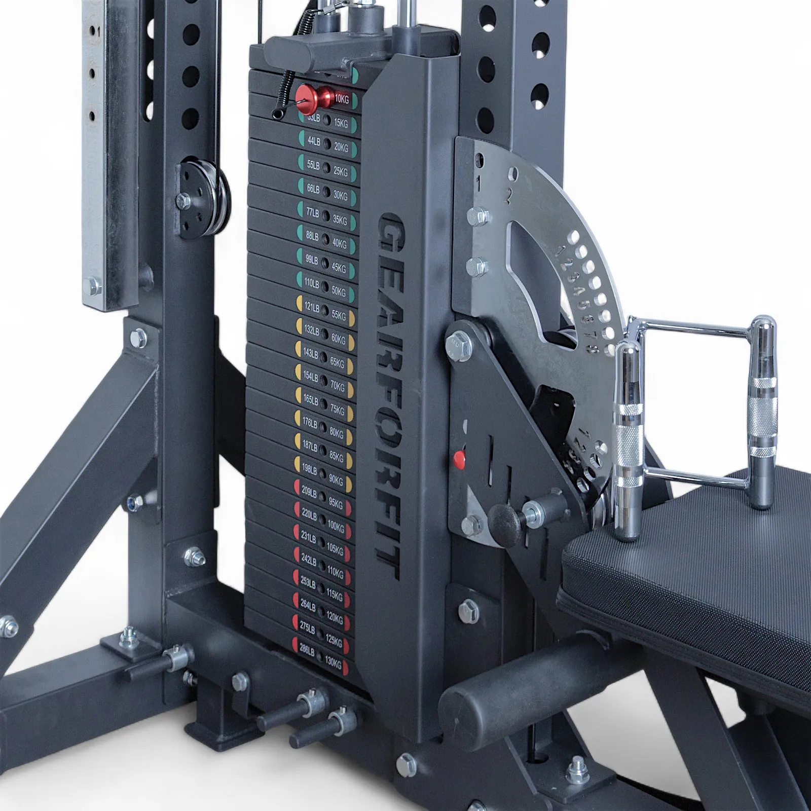 Heavy Weight Stack: 286 lb integrated stack with magnetic selector pin and 1:1 resistance ratio.