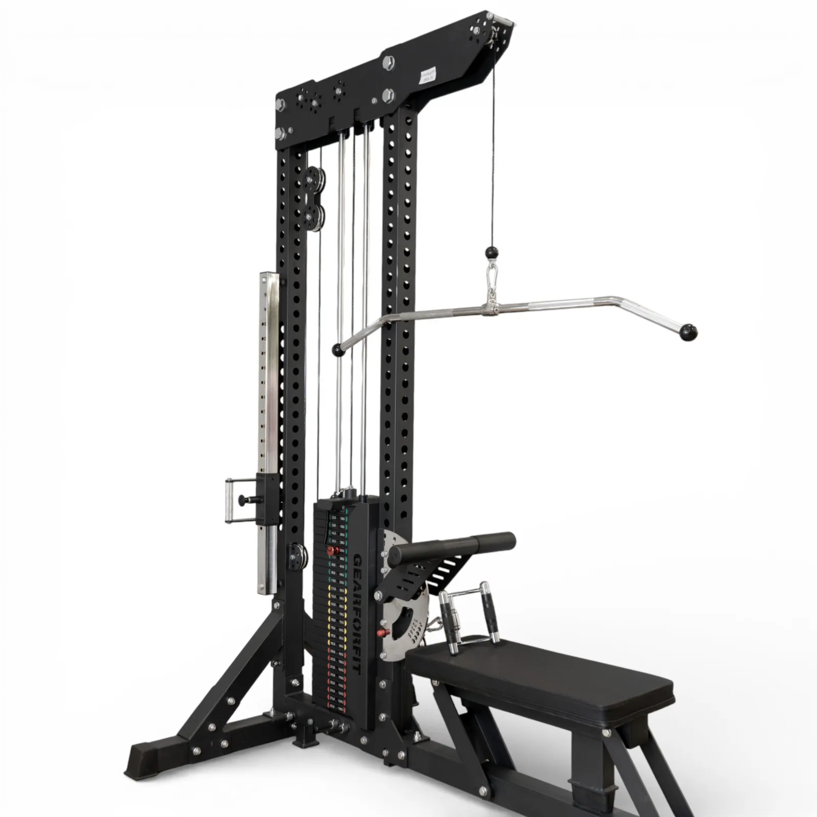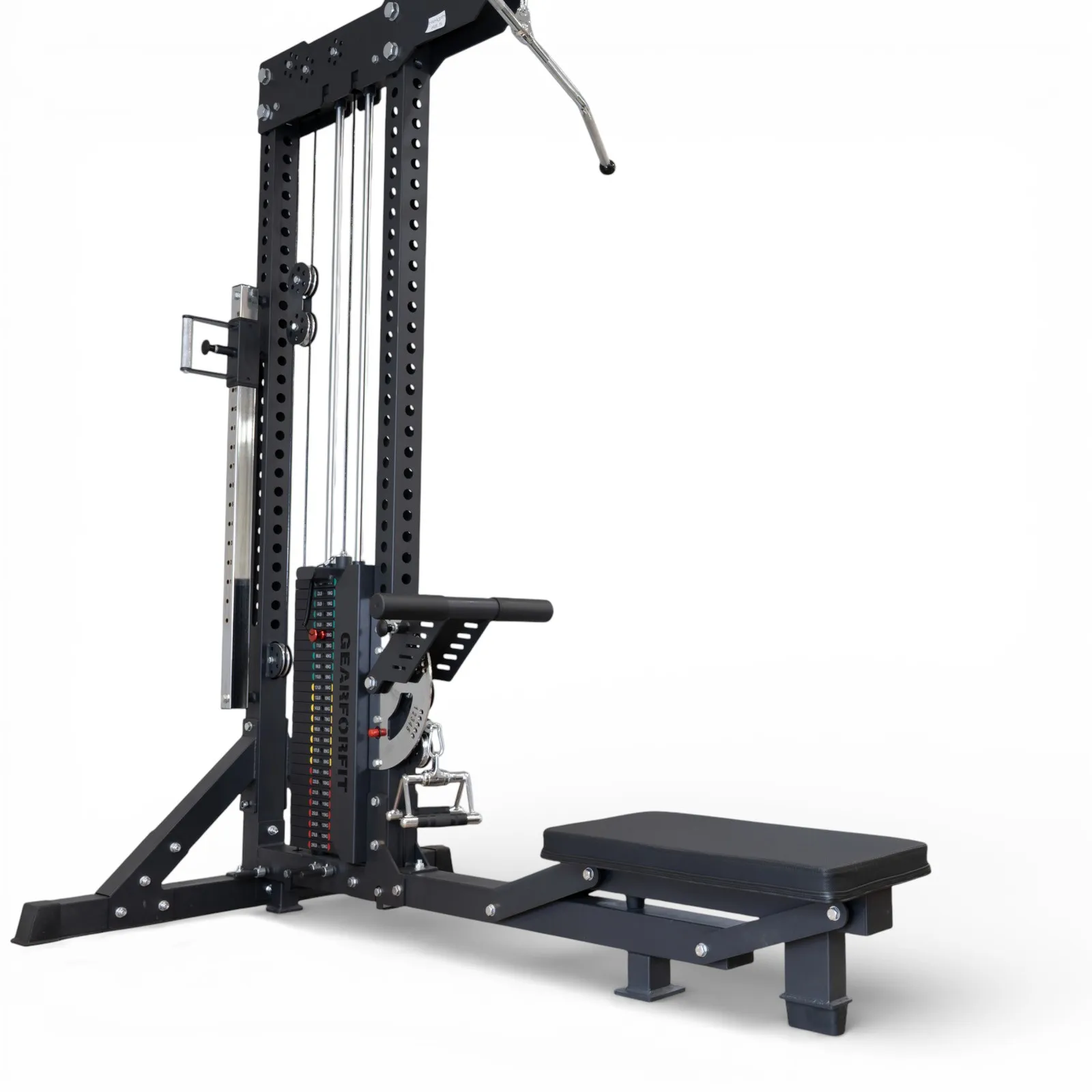 Foldable Seat & Adjustable Support: Converts instantly from pulldown to low-row setup.