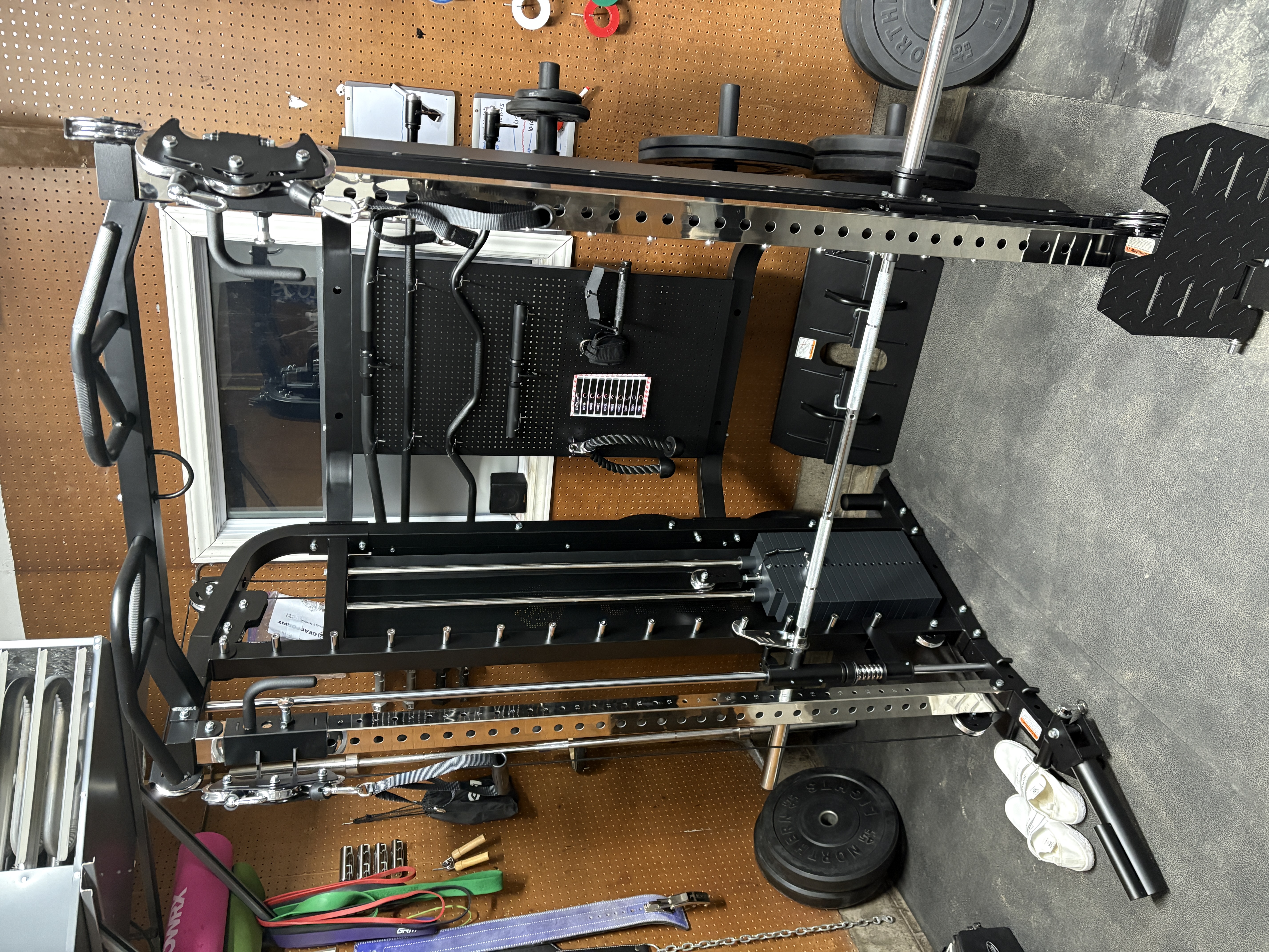 The X5 UltraFit Smith Machine Home Gym is built for serious strength training, offering a smooth and versatile pulley system (1:1 to 2:1) that supports up to 220 lbs per side. Engineered for durability, it features a robust Smith mechanism, premium ultra-glide pulleys, and convenient integrated storage. The X5 is your all-in-one powerhouse for effective, full-body workouts. (FREE SHIPPING APPLIES)