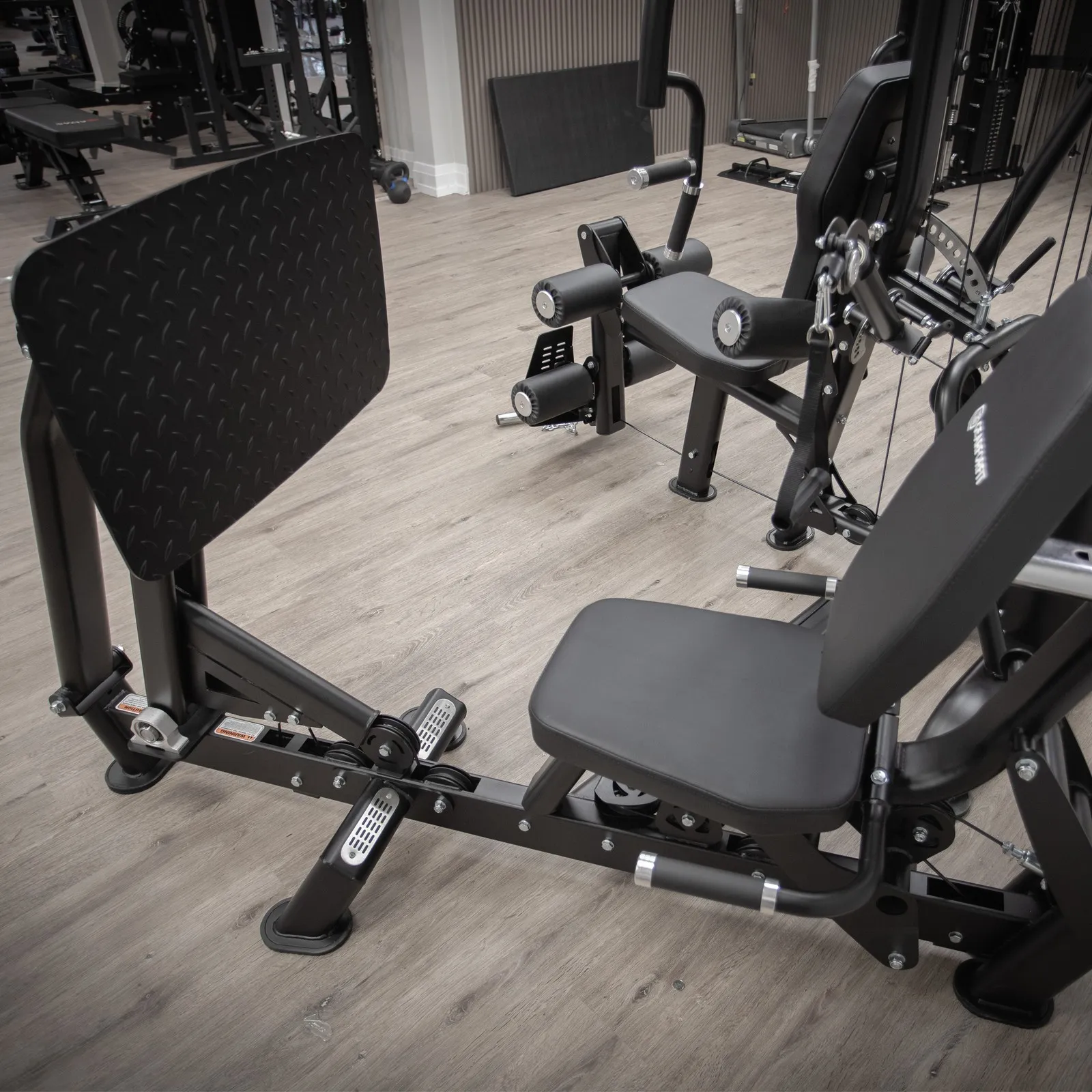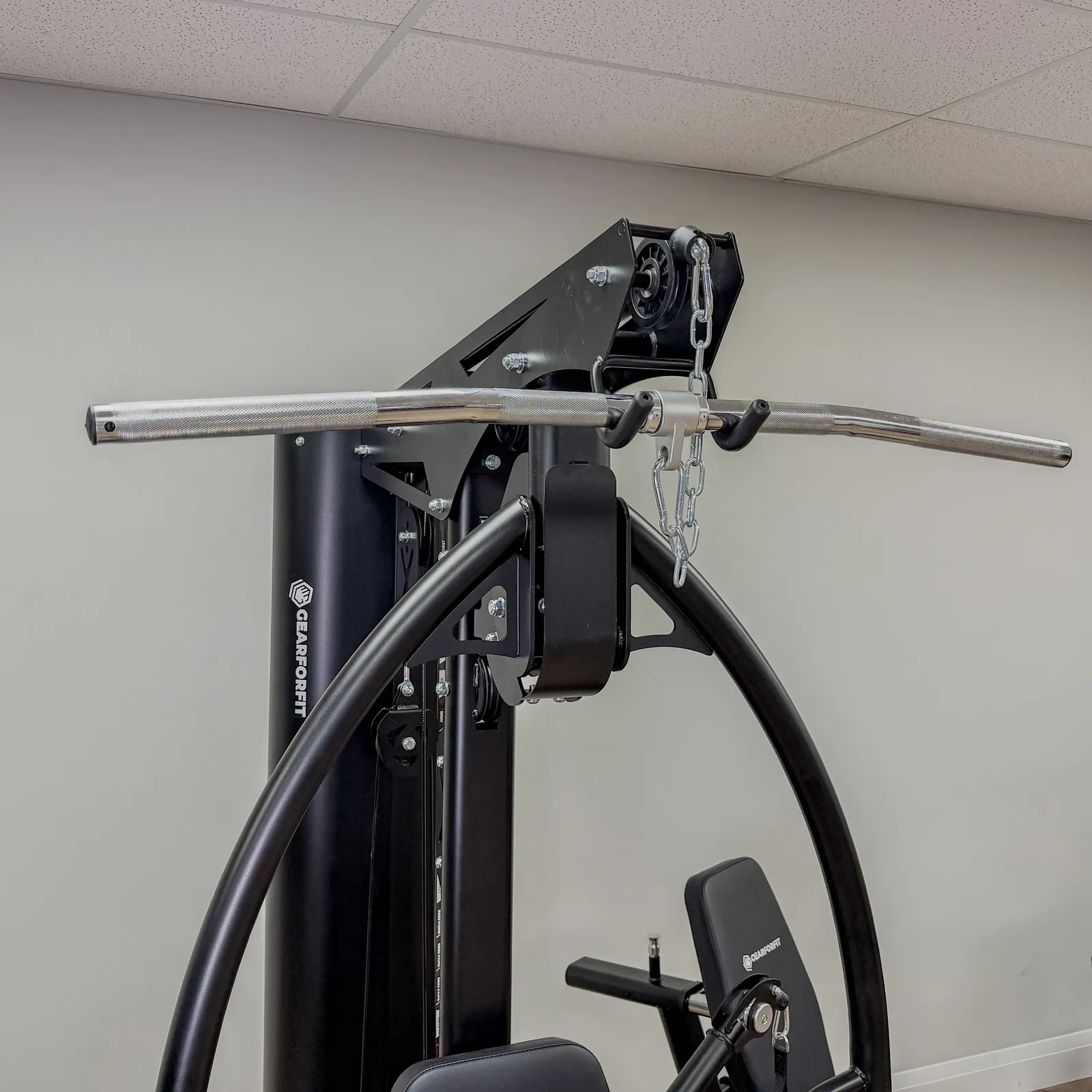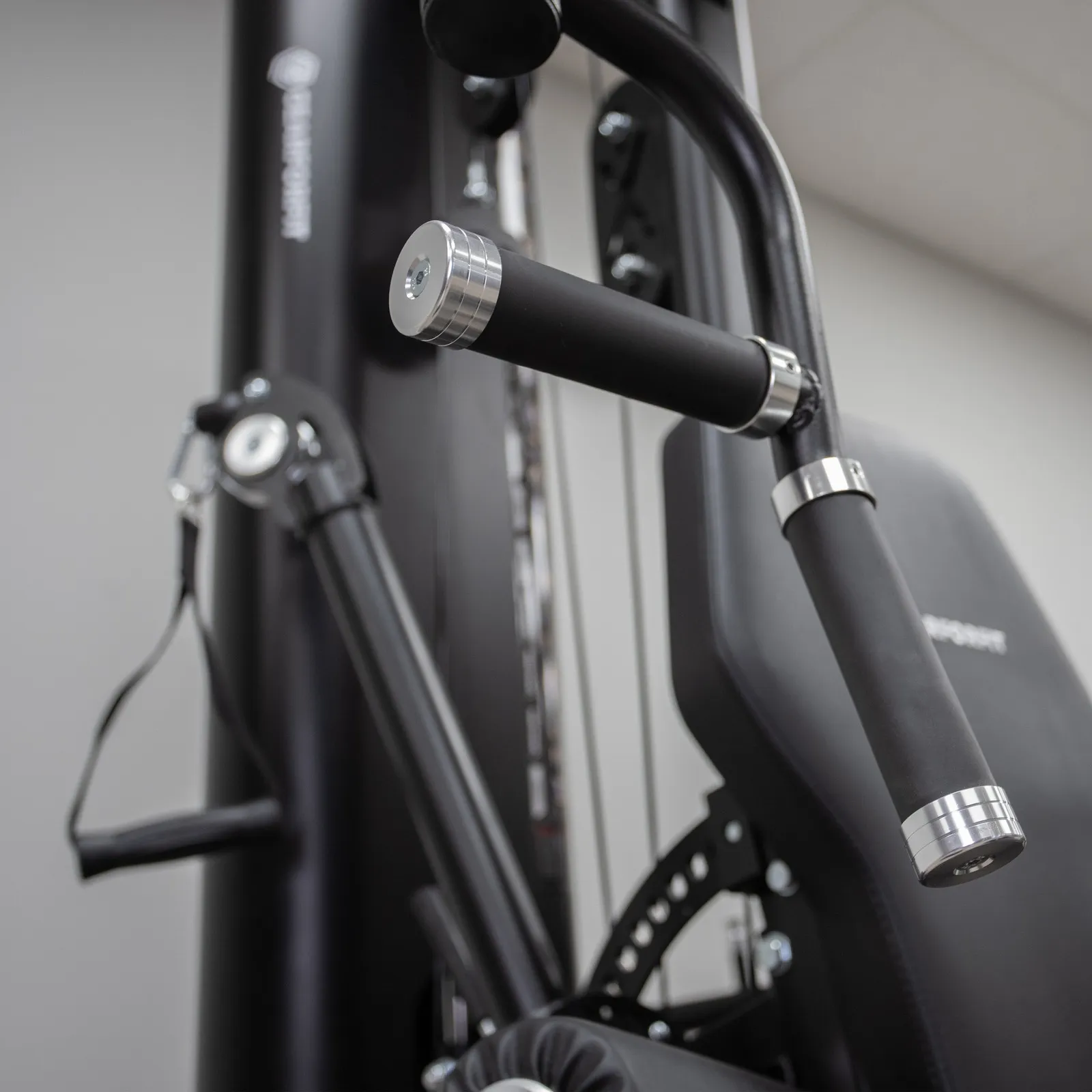 • Full-Body Functionality: Perform lat pulldowns, chest press, cable fly, seated row, leg press, pull-ups, and single-arm barbell movements in one station.
