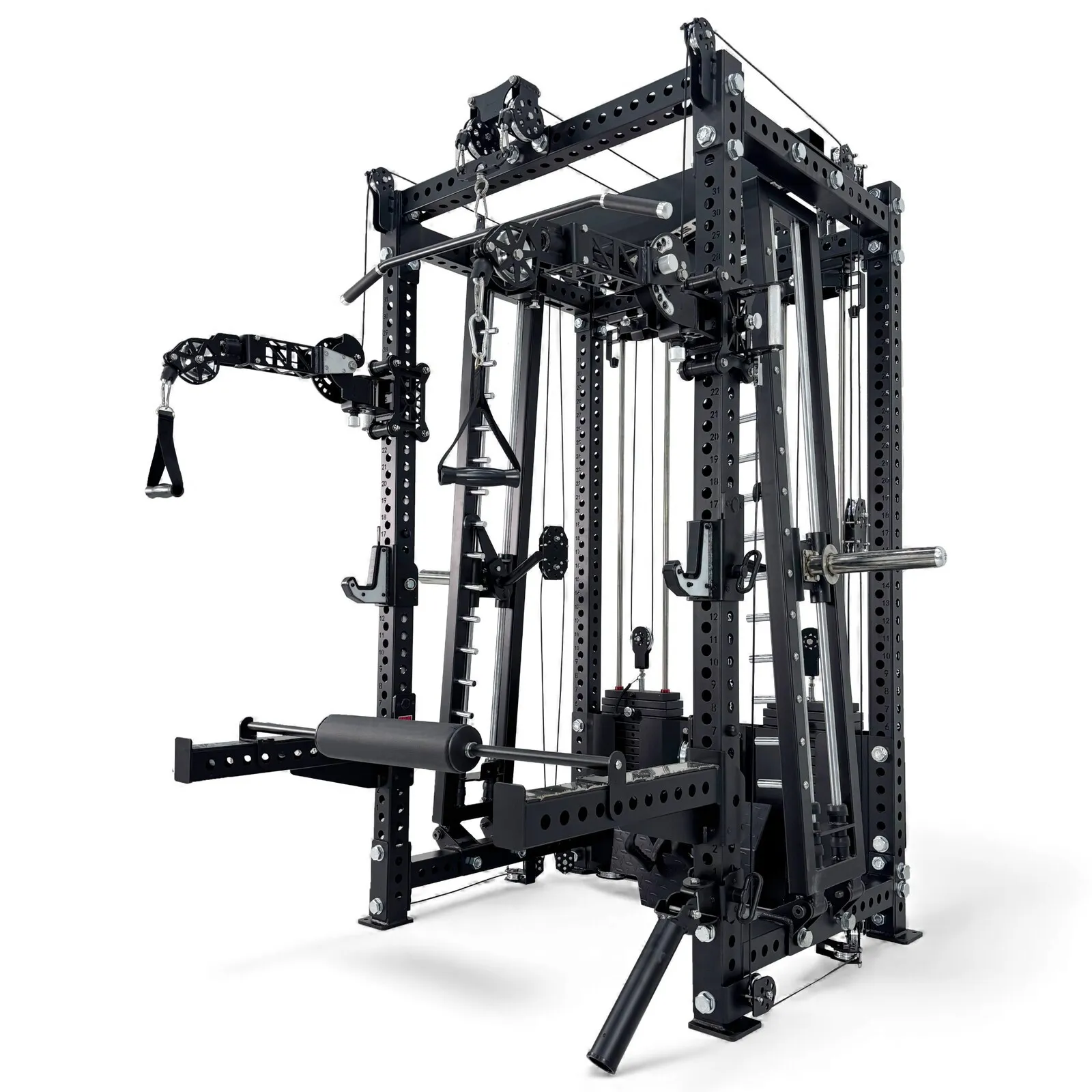 - Adjustable Converging Smith Mechanism – Train with natural movement patterns. Choose from multiple angles for chest press, squats, shoulder work, and biomechanical precision.