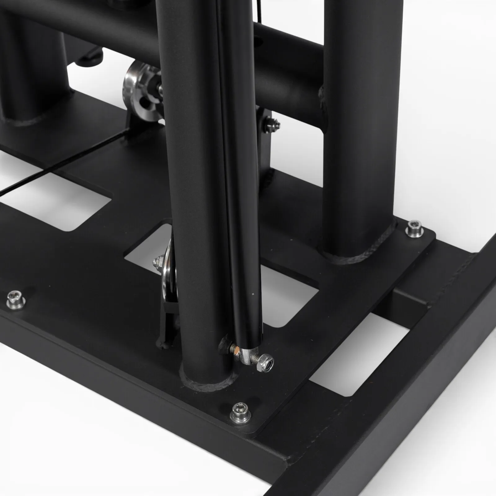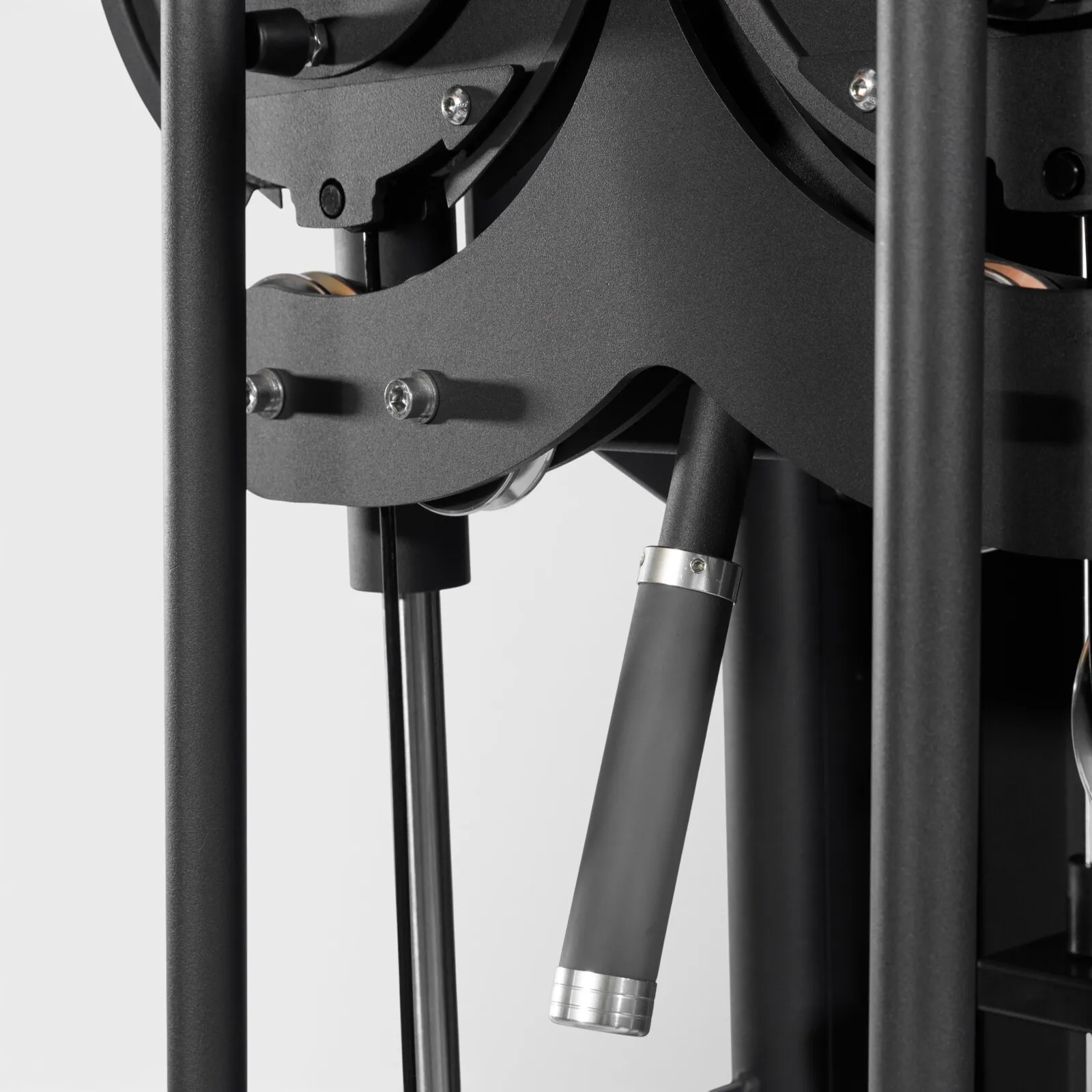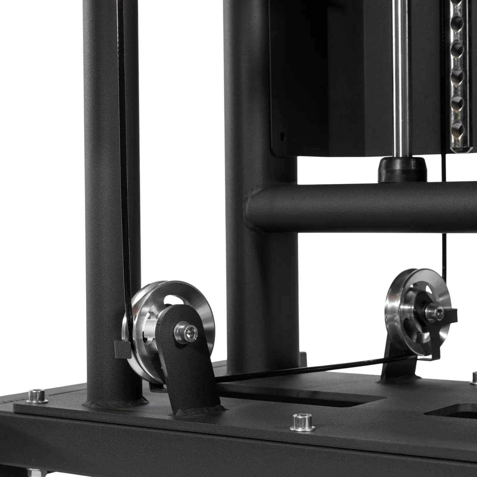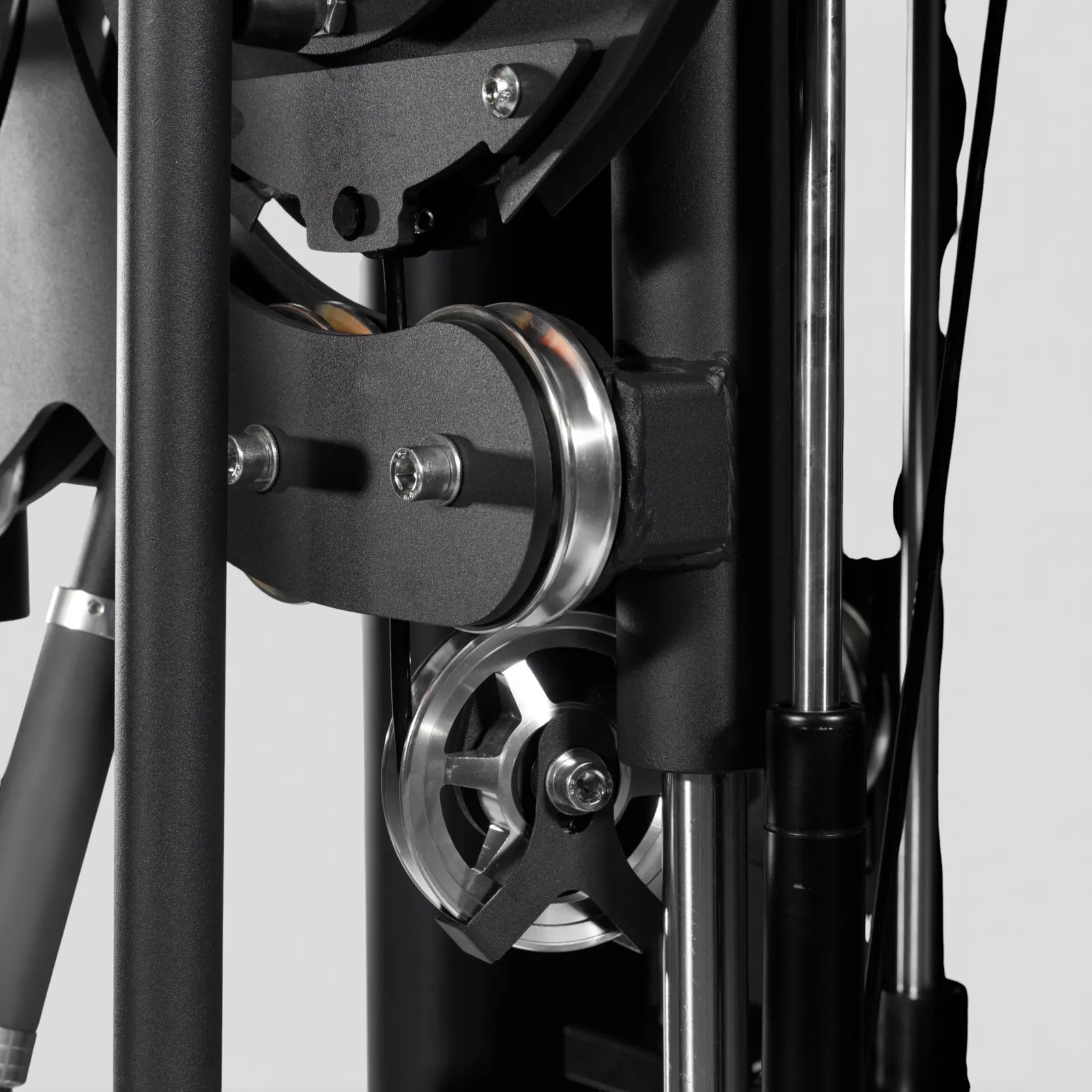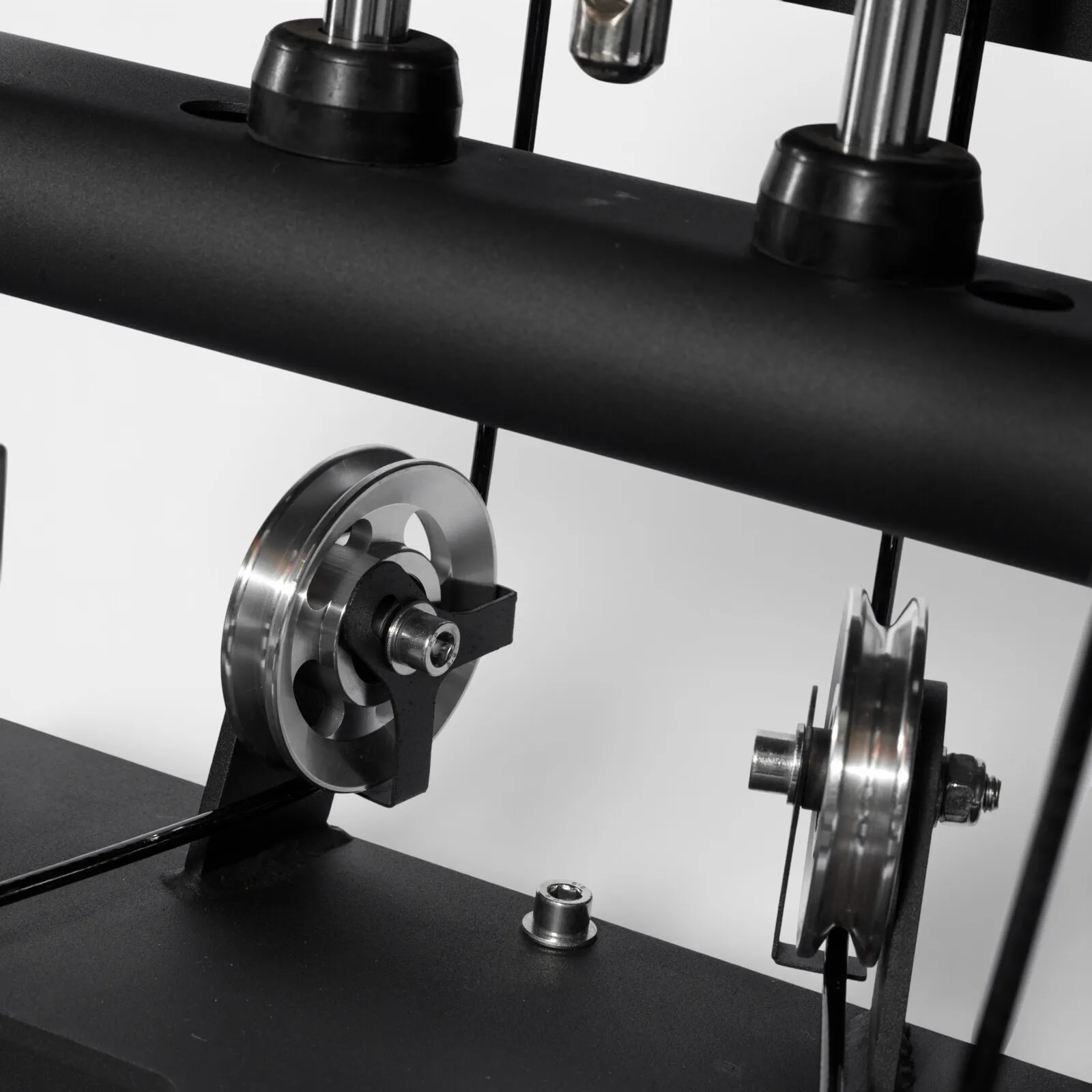 - Commercial Pulley System: Hardened aluminum pulleys combined with vinyl-coated steel cables provide fluid operation and durability.