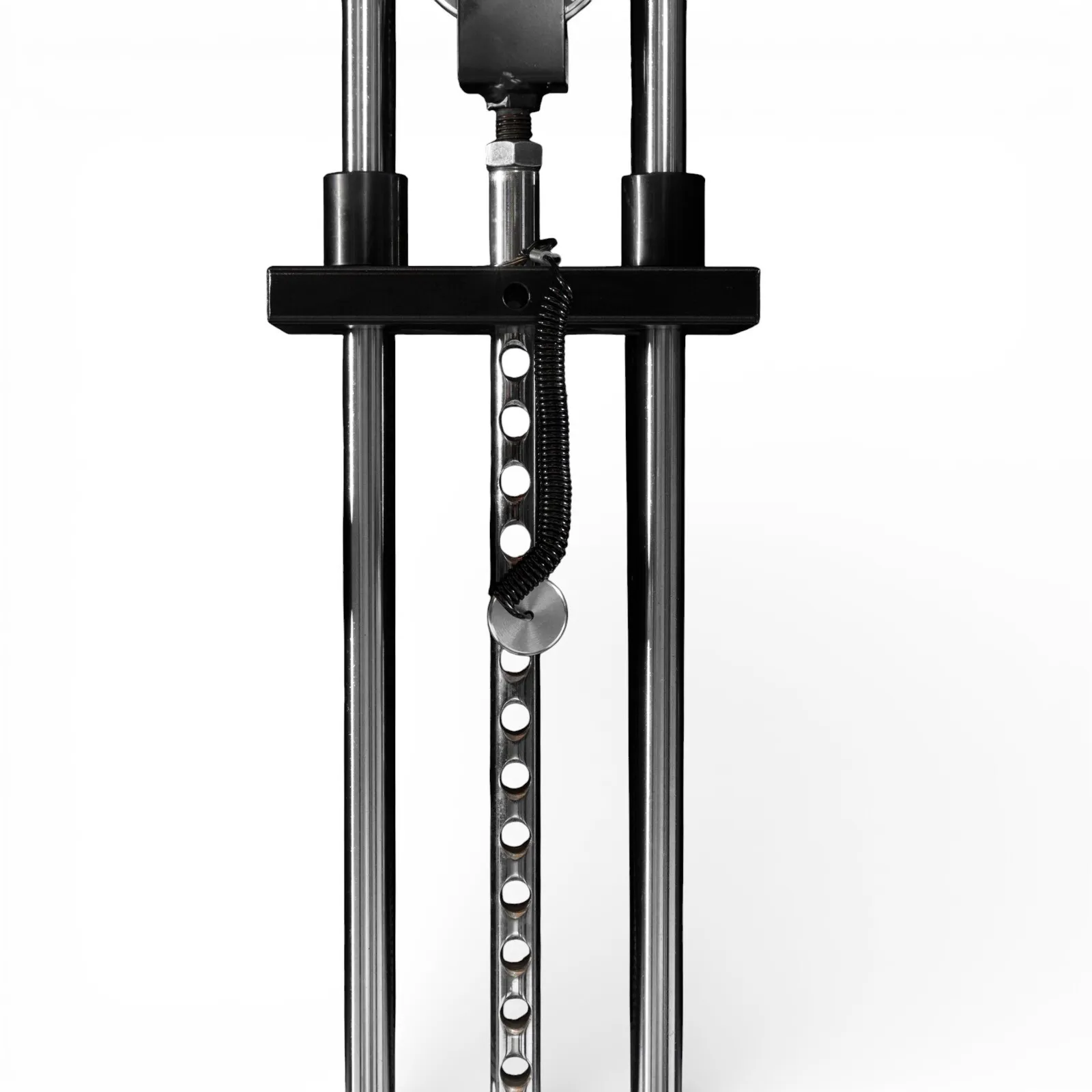 - Adjustable Arm System: Arms move vertically through 26" of travel across 14 adjustment ports to accommodate different user heights.