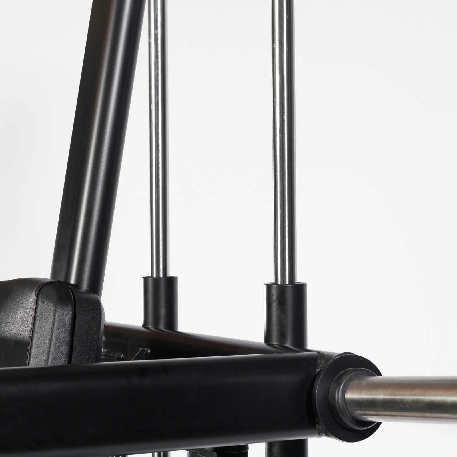 Plate-Loaded Smith Press Path: Offers a guided, stable pressing motion for safer heavy lifting without spotter assistance.